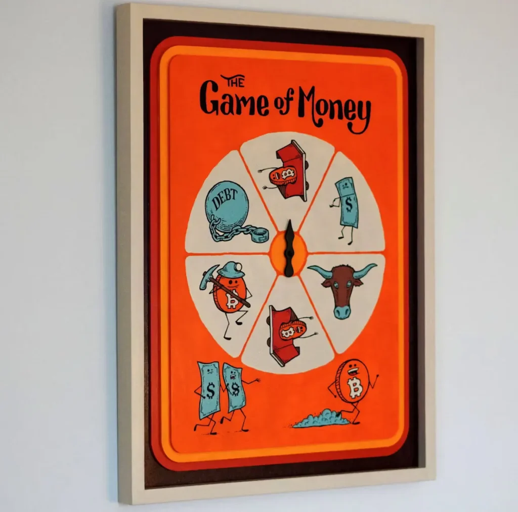 My latest piece for Vegas, The Game of Money, continues this theme: we’re playing the game, and we’re enjoying it. As a child, my father told me that life is a game we play, and the game of money is one part of that larger game. We increase our freedom by recognizing the game so we can play it—and play to win. One angle of this new project is the idea that Bitcoin is the game—or the gaming of money itself. From its inception, Bitcoin was designed to outplay fiat by introducing a competition fiat was unprepared for. But most importantly, Bitcoin is fun and accessible. I hope my art brings a smile to the faces of those who see it. I create to spread positivity and truth—because Bitcoin is verifiable truth.