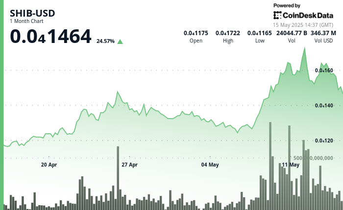 - In the last hour, SHIB experienced significant volatility with a sharp decline from 0.0000151 to 0.0000147, followed by a modest recovery to 0.0000149.