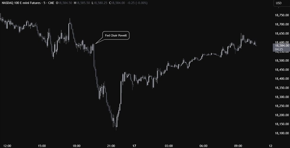 When this happens, the moves are generally faded soon after as you can see in the Nasdaq chart above. This was not fresh news. The fresh news was two weeks ago when the stock market was selling off hard and there were hopes for Powell to provide some kind of support. Support that didn’t come and the stock market resumed the selloff.