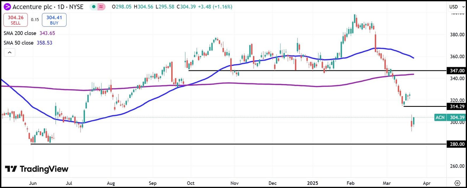 ACN daily stock chart
