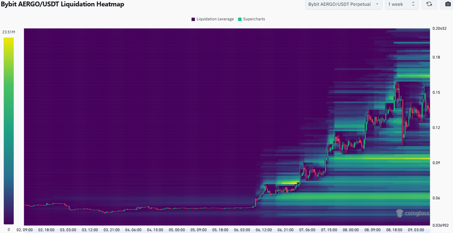 The liquidation heatmap of the past week revealed that AERGO allowed liquidity to build up overhead while consolidating for a few hours. This, before bursting higher beyond these pockets. This pattern appeared to end below the $0.166 liquidity pocket.