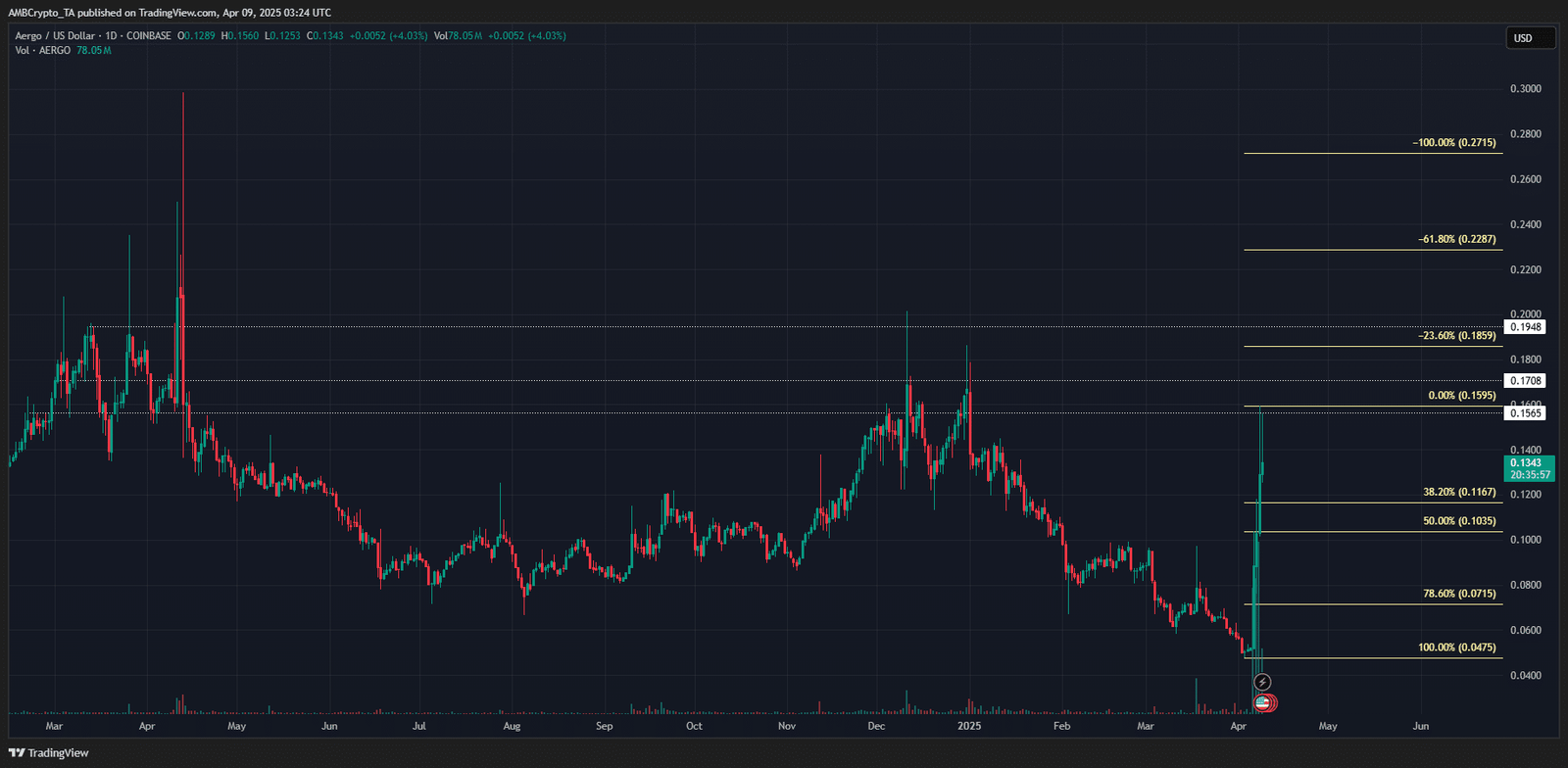 Moreover, the price has reached the key resistances from March and April 2024. The $0.17 and $0.195 levels marked the tops Aergo token formed in the past year. And, they could mark this rally’s top as well.