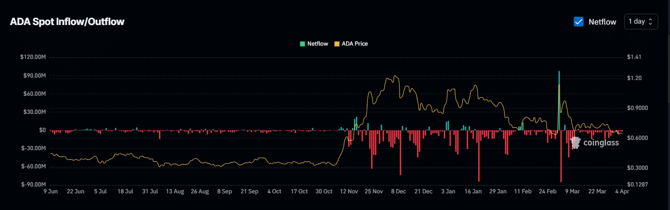 Sentiment around Cardano [ADA] has been notably bearish, as investors have been selling over the past month. This may continue, as recent market revelations show that continued selling efforts have been dominant.