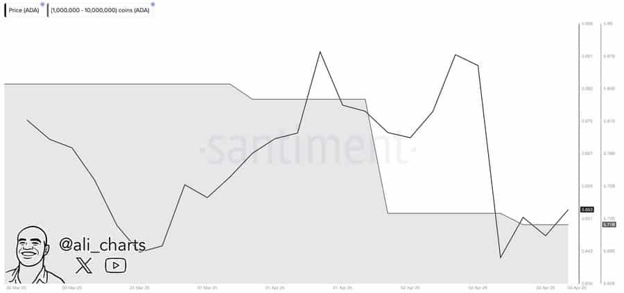 - In the last 24 hours, whales sold a significant amount of ADA, forcing a fall.