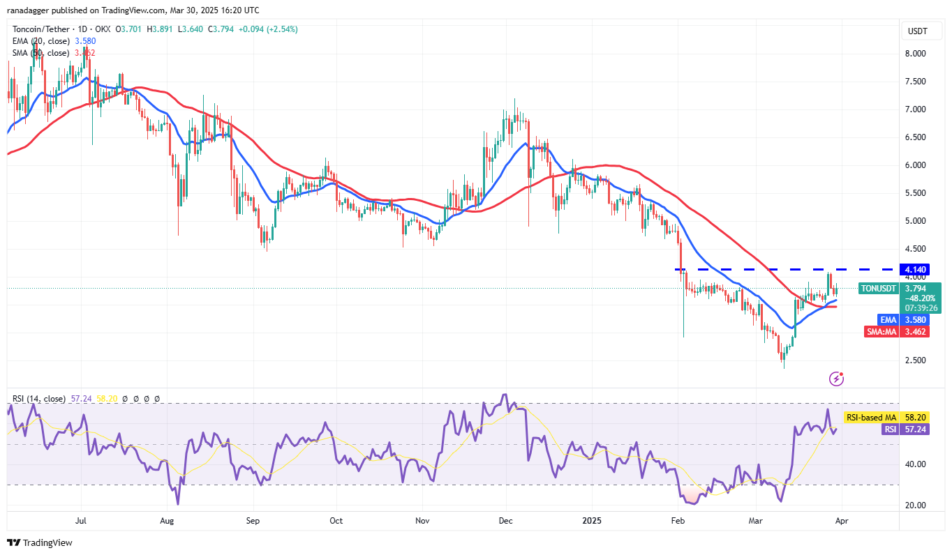 The upsloping 20-day EMA ($3.58) and the RSI in the positive zone indicate advantage to buyers. The bulls will try to strengthen their position by pushing the price above $4.14. If they can pull it off, the TON/USDT pair may start a new upmove to $5 and, after that, to $5.65.