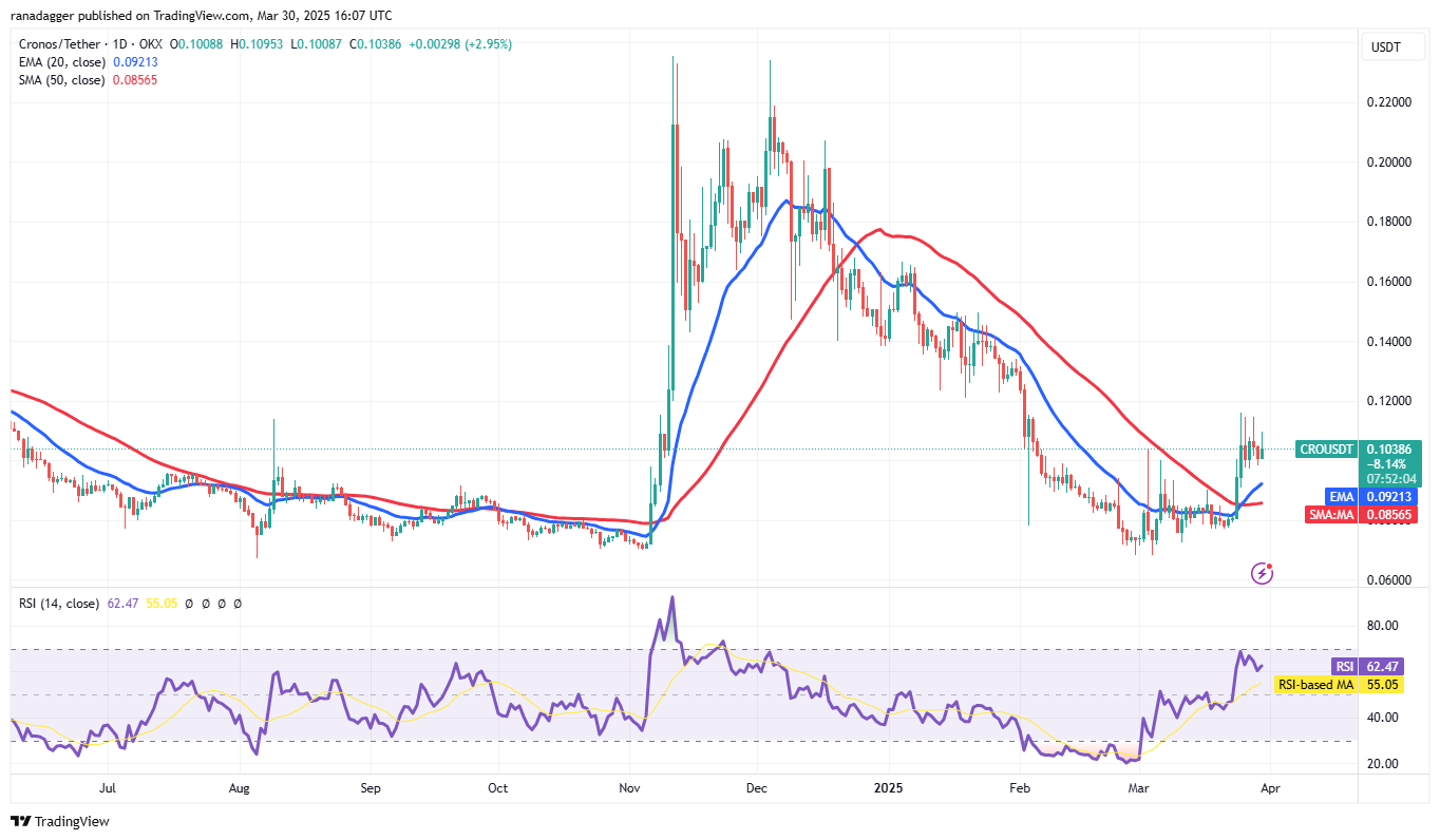 The CRO/USDT pair is facing selling near $0.12, but a positive sign in favor of the bulls is that they have not allowed the price to sustain below the $0.10 support. This suggests that buyers are trying to form a higher low. If the bulls shove the price above $0.12, the pair could rally toward $0.14.