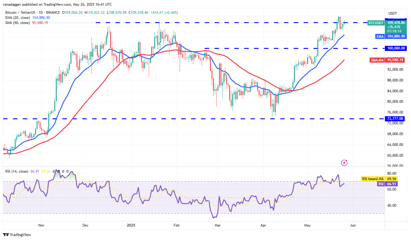 Bitcoin bulls are trying to push and sustain the price above $109,588, indicating that every minor dip is being purchased.