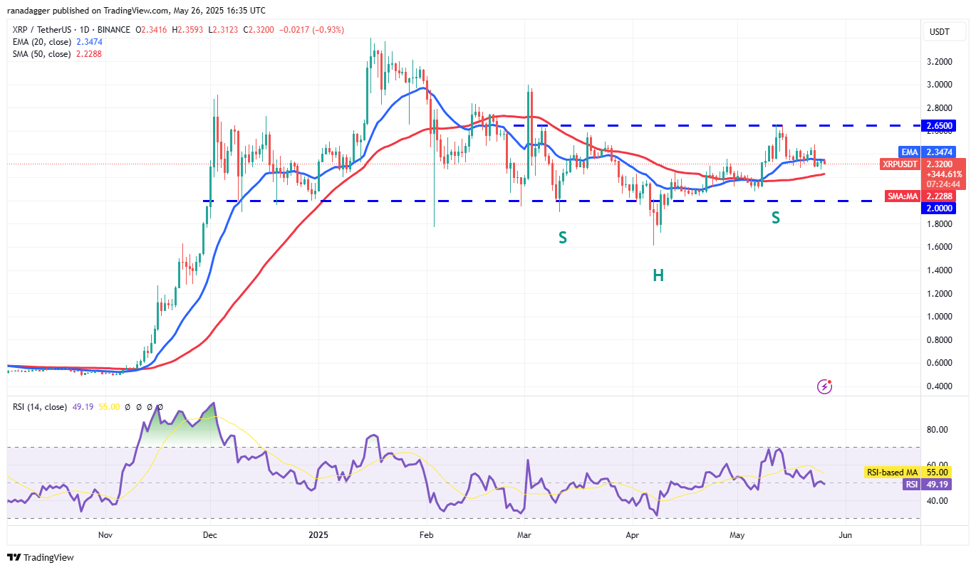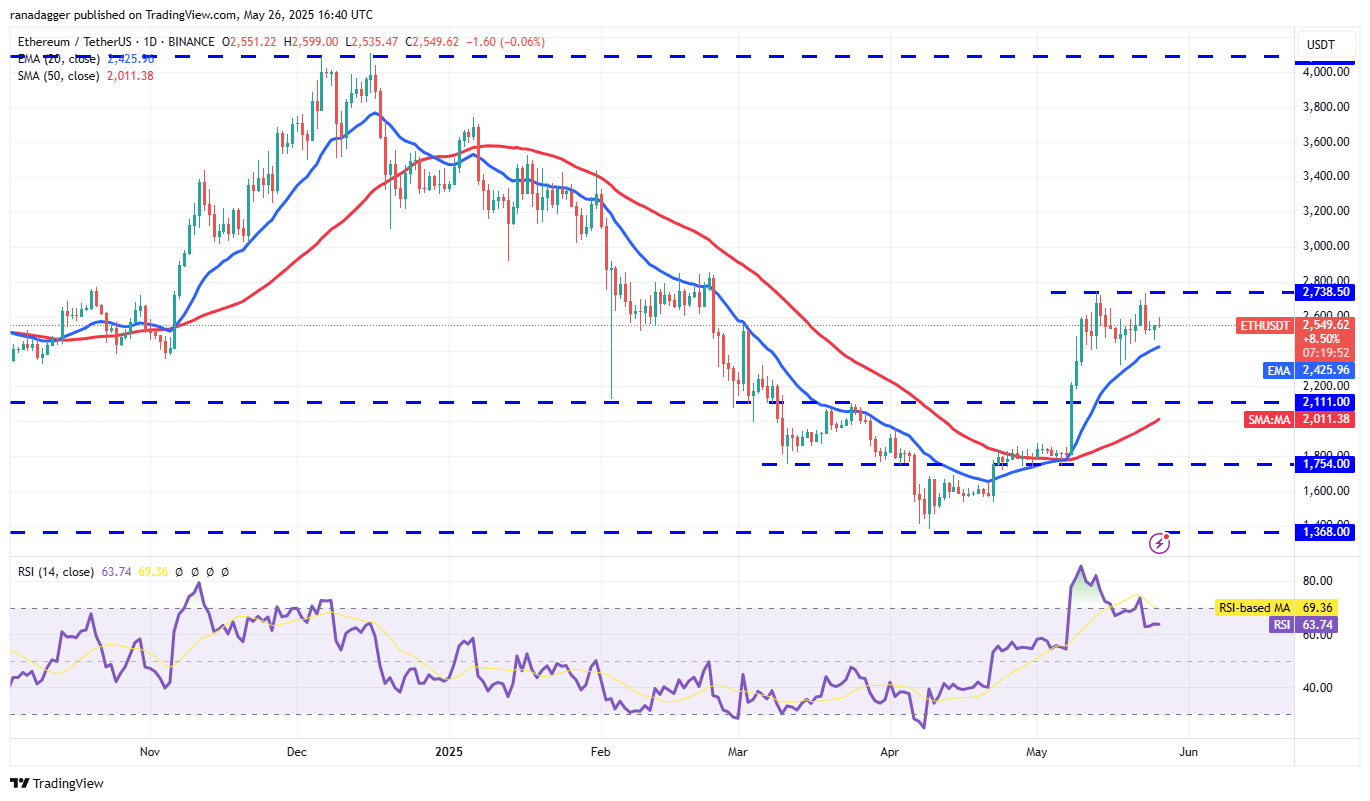 Ether (ETH) turned up from the 20-day EMA ($2,425) on May 25, indicating solid demand at lower levels.