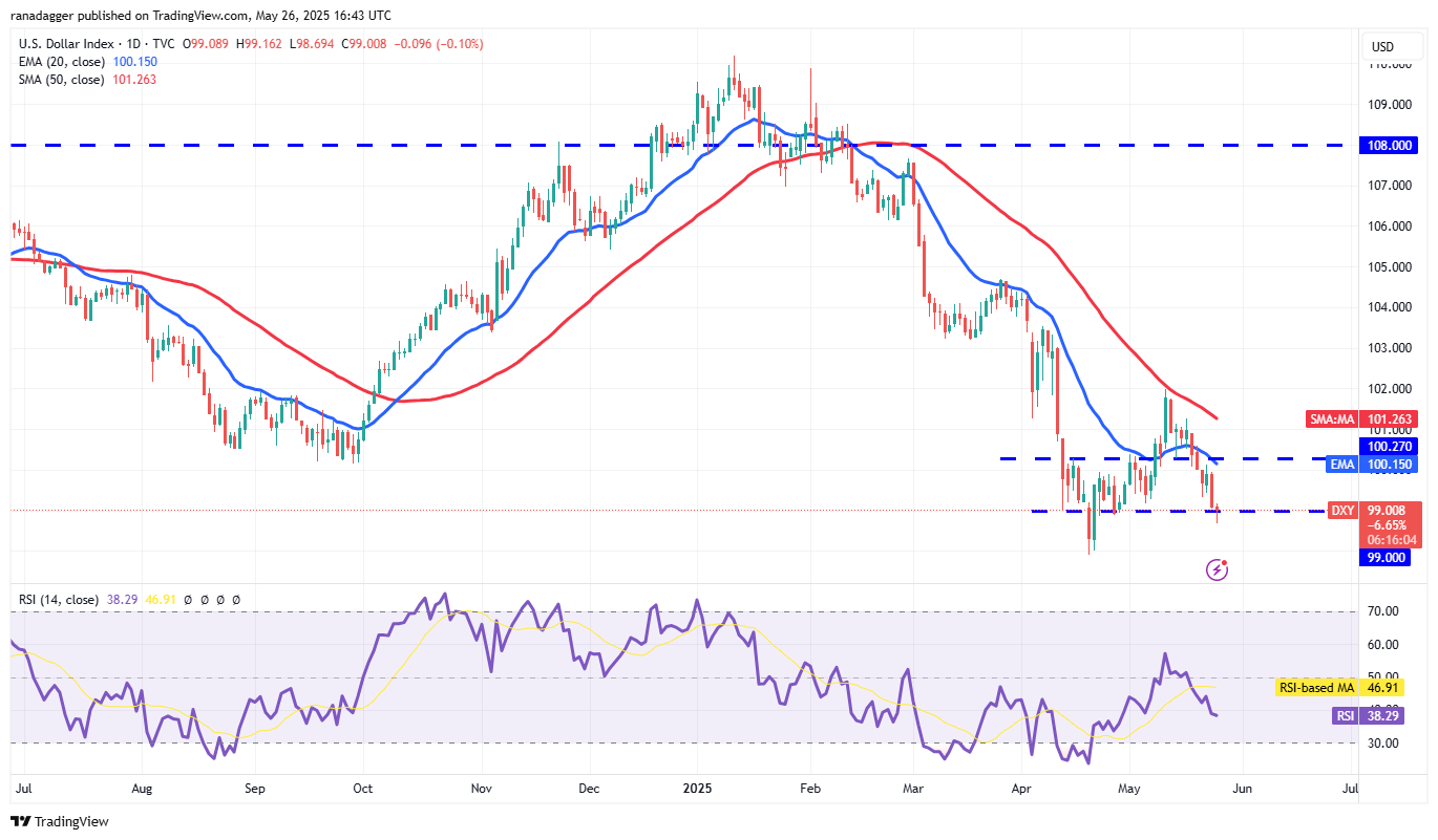 The bulls tried to push the US Dollar Index (DXY) above the 20-day EMA (100.15) on May 22, but the bears held their ground.