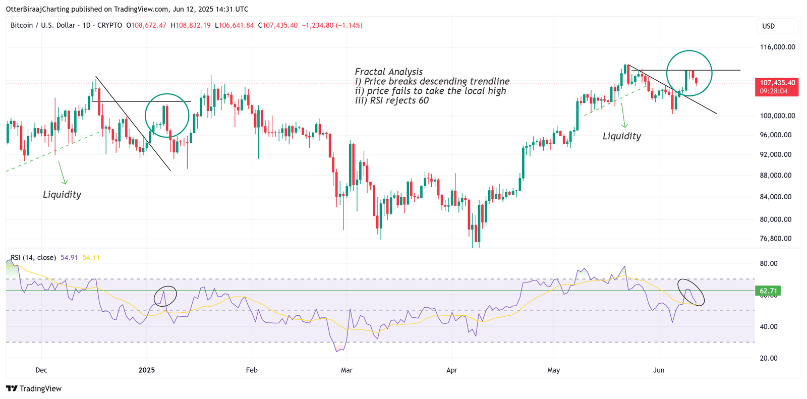 While a consolidation near $108,000 should not break bullish momentum, fractal analysis outlines the possibility of a deeper drawdown.
