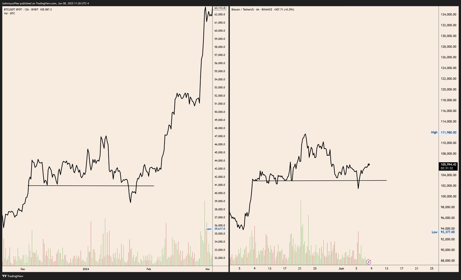 In early 2024, BTC rallied impressively following a consolidation phase. With Bitcoin hovering above $106,000 as of June 9, a similar breakout could soon send prices toward $110,000–$120,000.