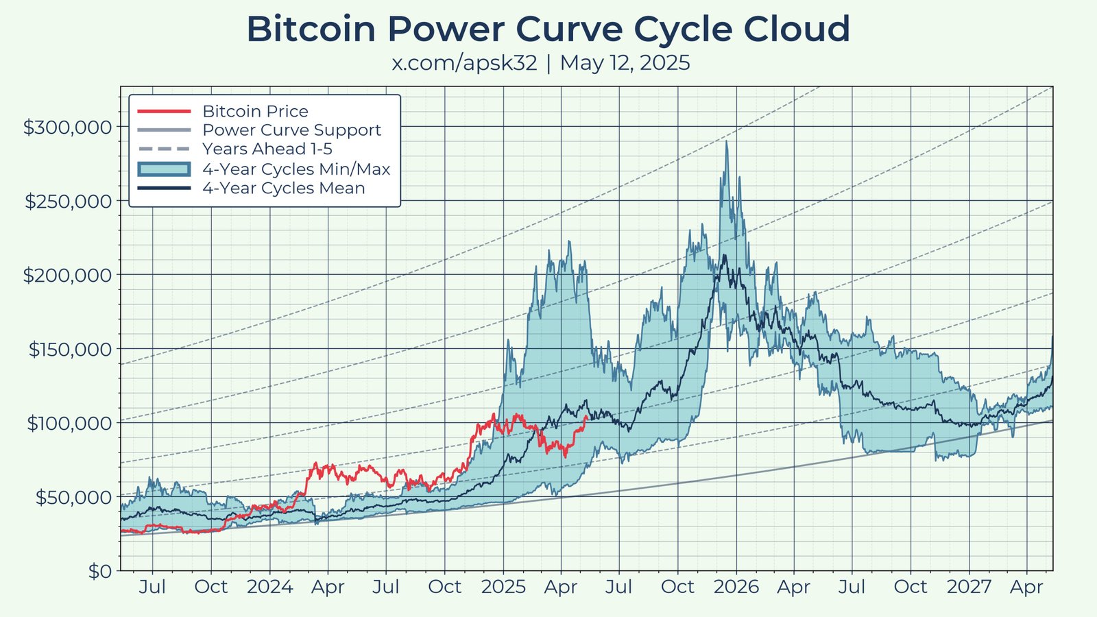 Bitcoin price cycles remain in focus as part of the BTC price “power curve” model.