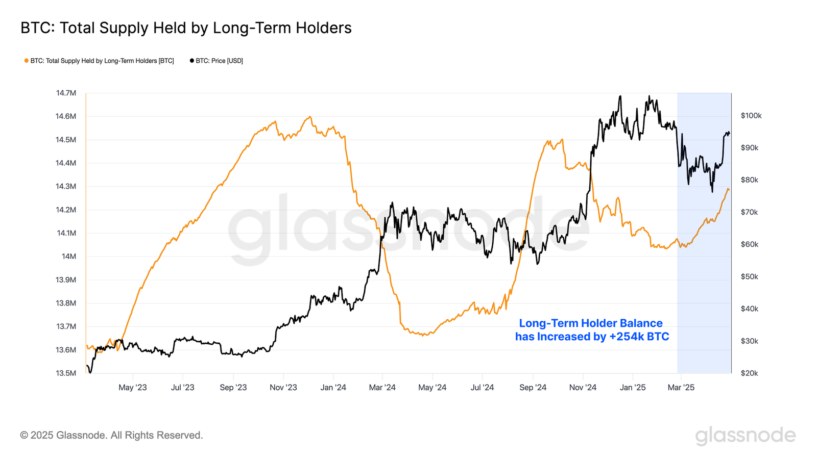 As is visible in the graph, the Bitcoin LTH Supply has witnessed an increase over the past two months or so, a sign that some STHs have been maturing into the cohort. In total, the metric has gone up by 254,000 BTC during this period.