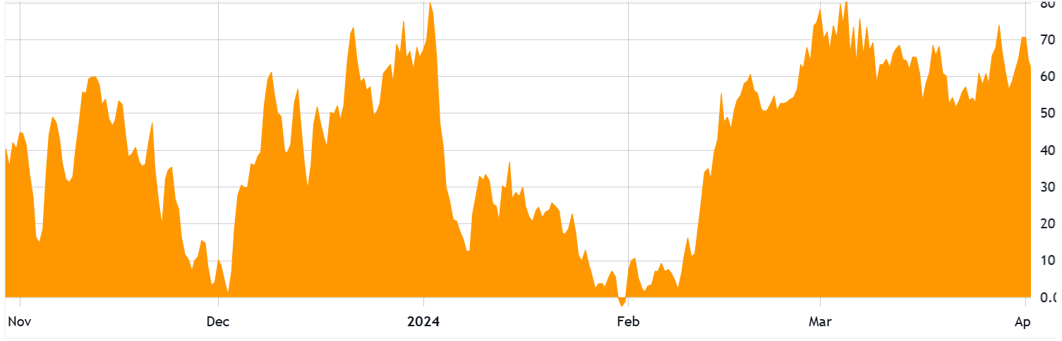 Bitcoin gained 84% from Jan. 25, 2024, to March 13, 2024