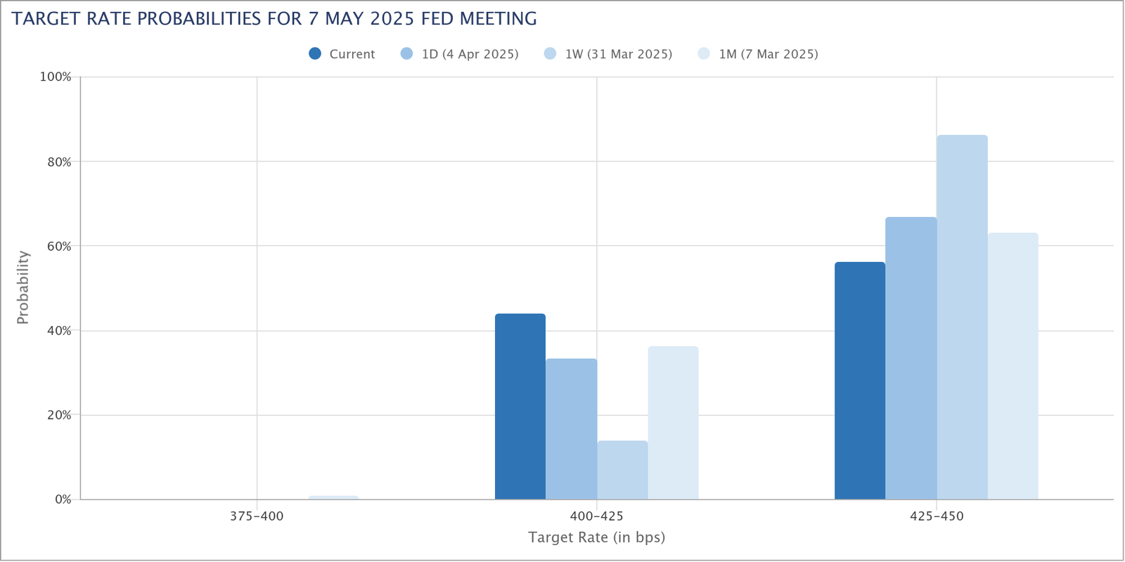 Fed target rate probability comparison for May FOMC meeting. Source: CME Group