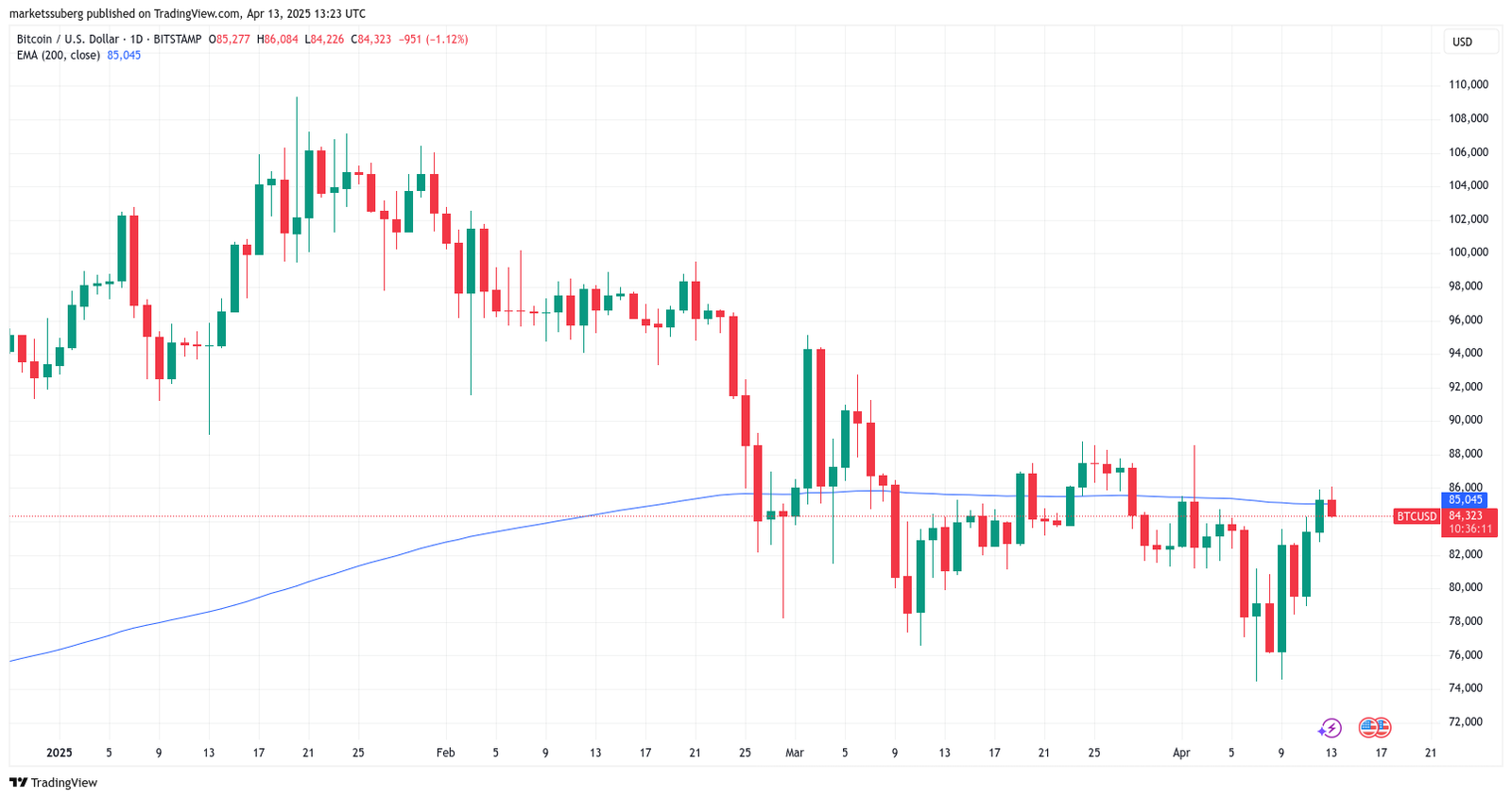 Daan Crypto Trades noted the ongoing interplay with the 200-day exponential moving average (EMA) at $85,000.