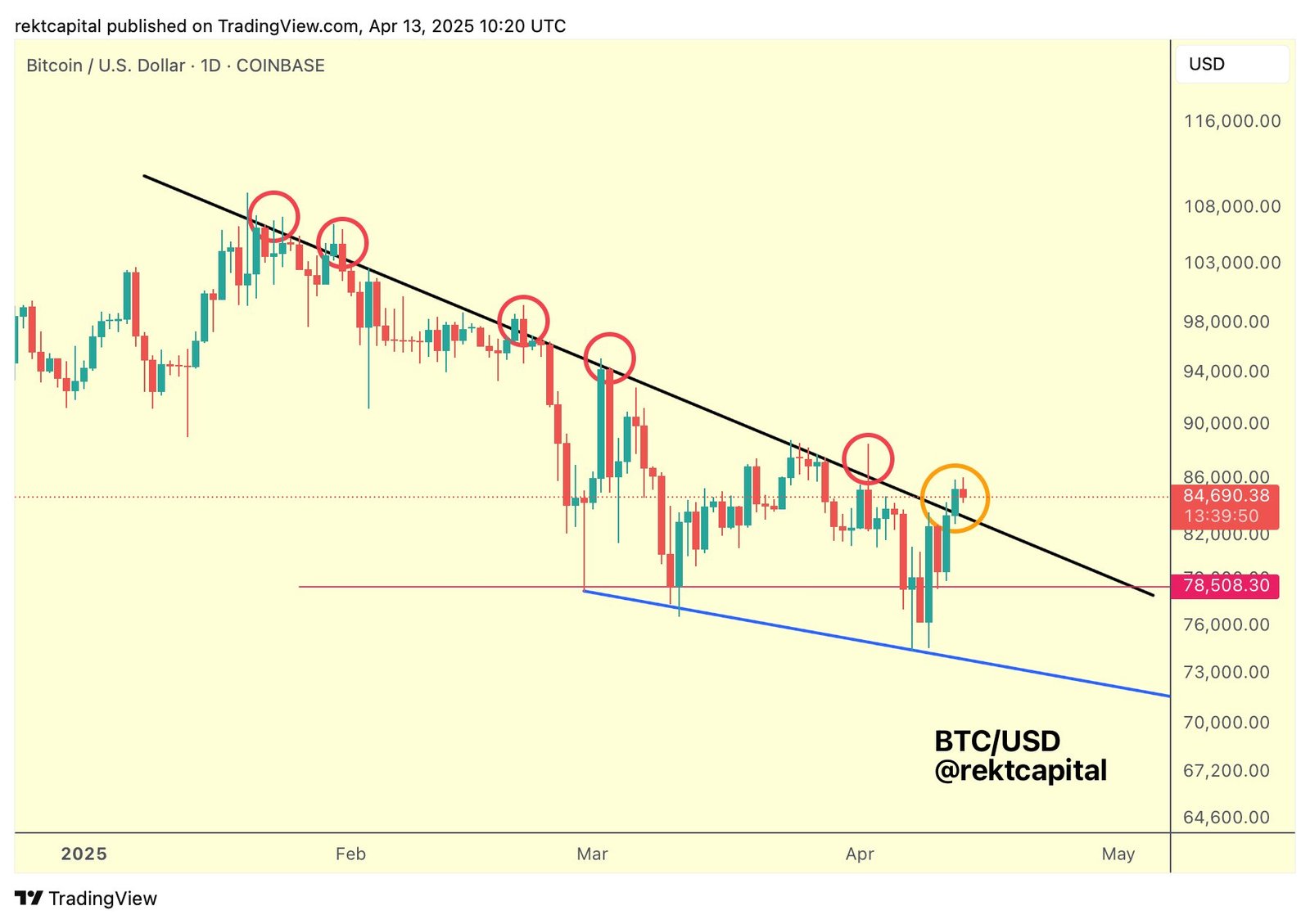 BTC/USD 1-day chart. Source: Rekt Capital/X