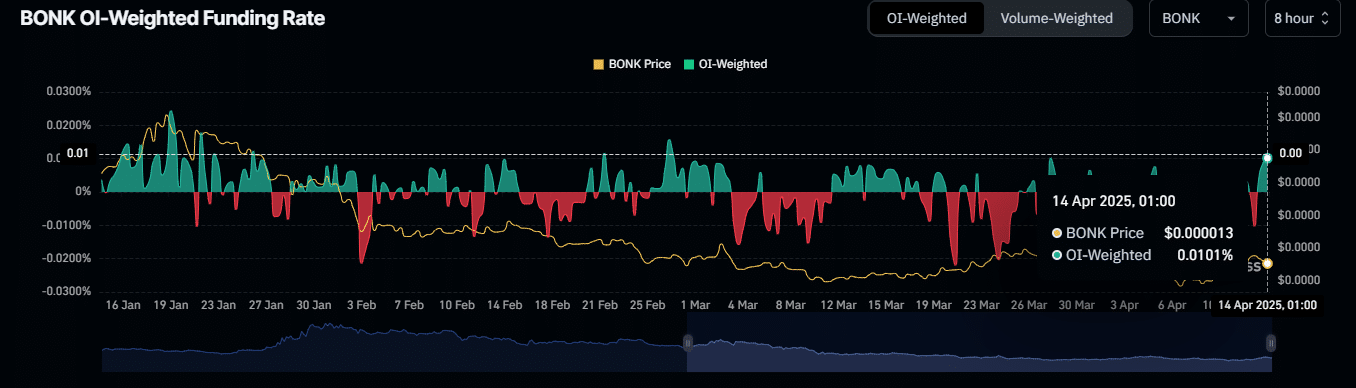 This reading confirms high buying activity in the market, which could support a breakout of the resistance level. If the resistance level is breached, it may drive a further rally, potentially leading to new highs for BONK.