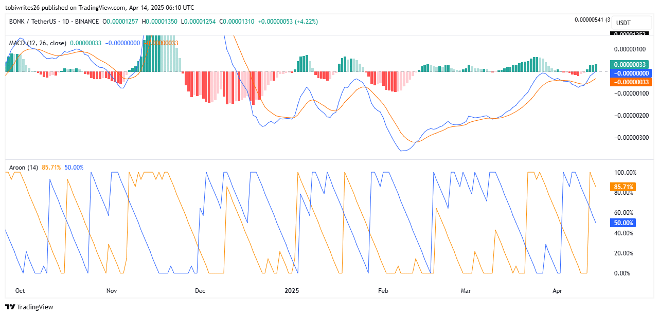 If the MACD line moves into the positive region and the histogram continues to increase, it will confirm rising momentum among traders actively buying BONK.