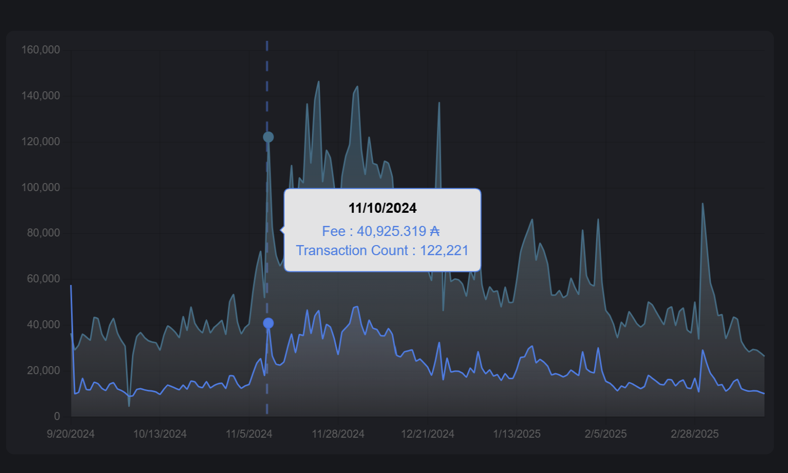 Daily transaction count and fees chart. Source: cardanoscan.io