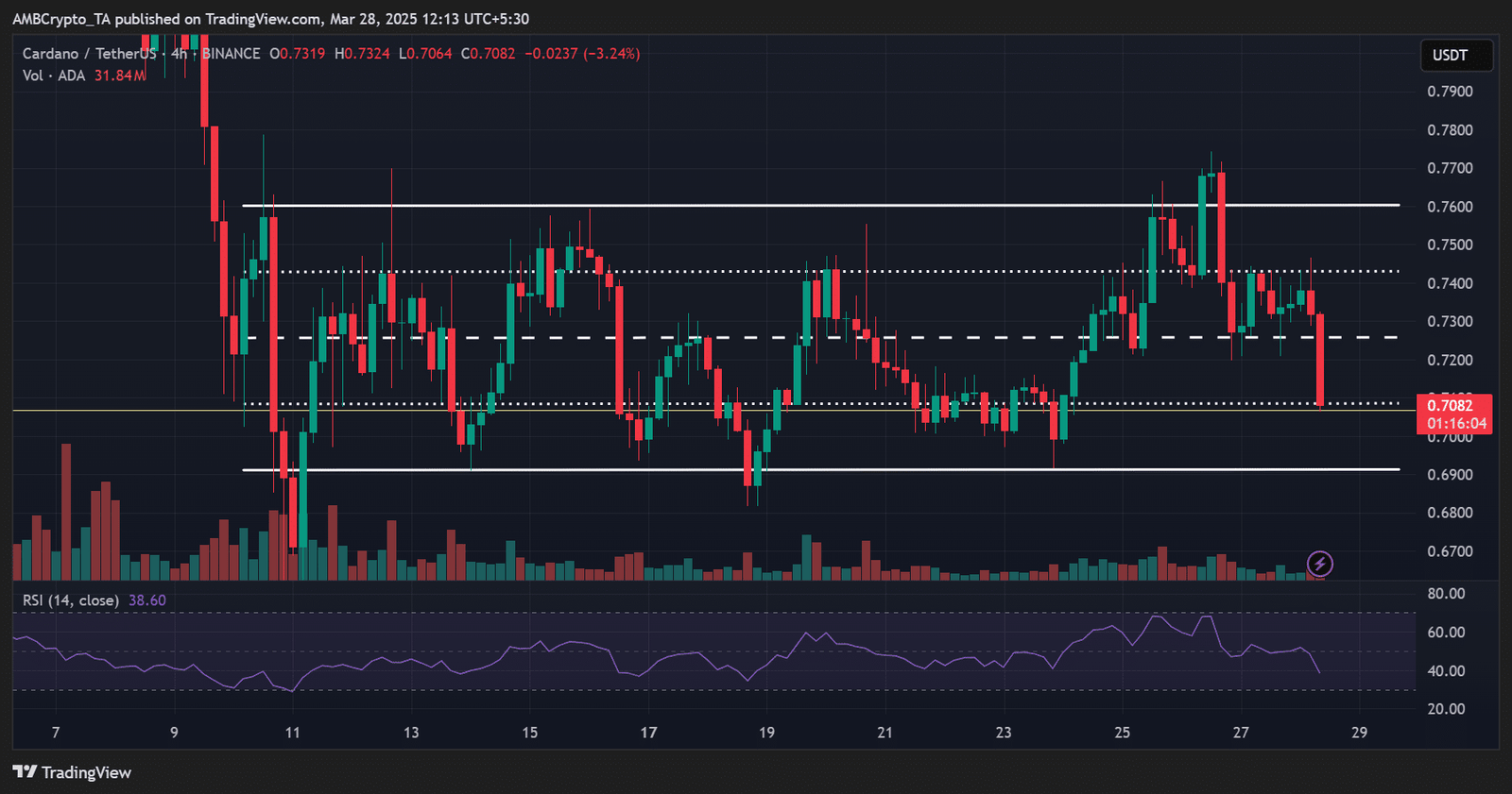 That said, ADA was stuck in a tight consolidation between $0.70 and $0.77 in the second half of March. A breakout on either side was dependent on Bitcoin’s [BTC] next price direction.