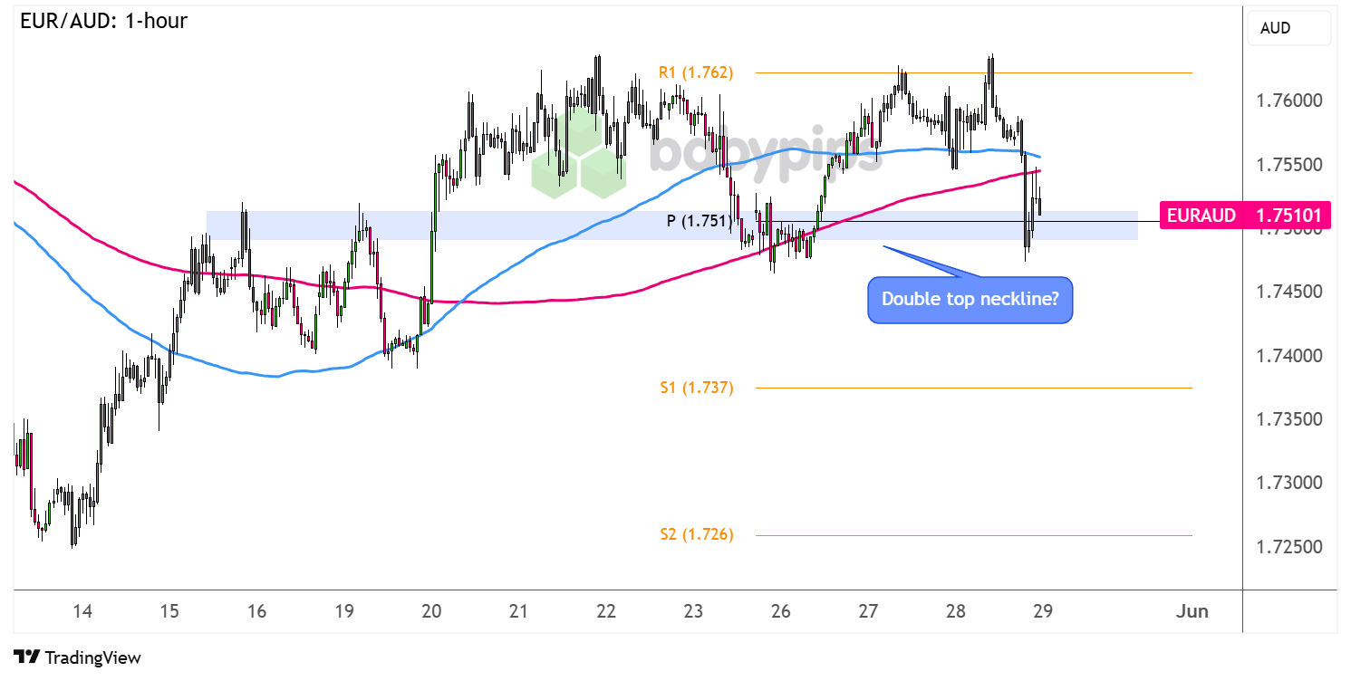 EUR/AUD is now down to the area of interest at the 1.7500 major psychological mark, which has previously held as resistance and also lines up with the neckline of a possible double top pattern.