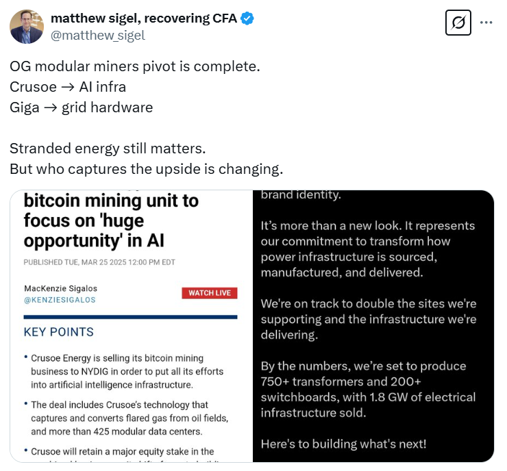 Crusoe to sell Bitcoin mining business to NYDIG to focus on AI