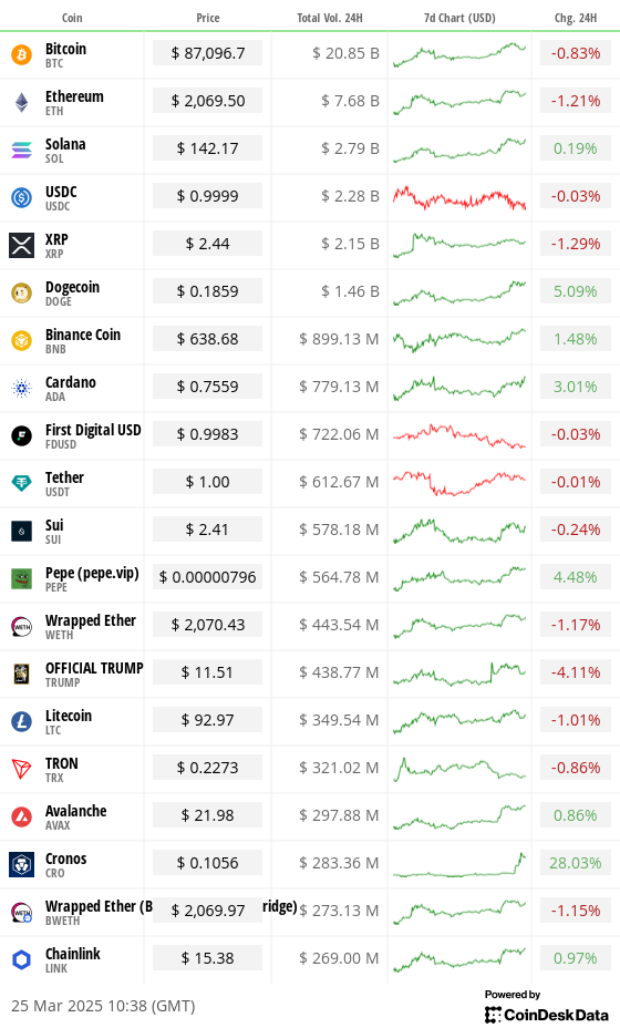 Risk-assets have a spring in their step. Bitcoin (BTC) is trading above $87,000 and the S&P 500 reclaimed its 200-day moving average for the first time since March 10.