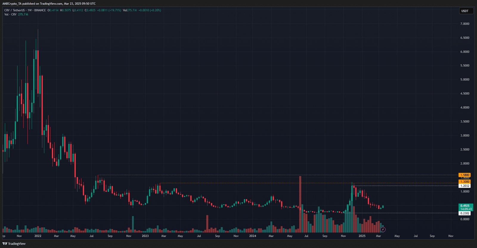 The weekly chart showed that even though Curve made strong gains in November, the long-term downtrend was not completely overthrown.