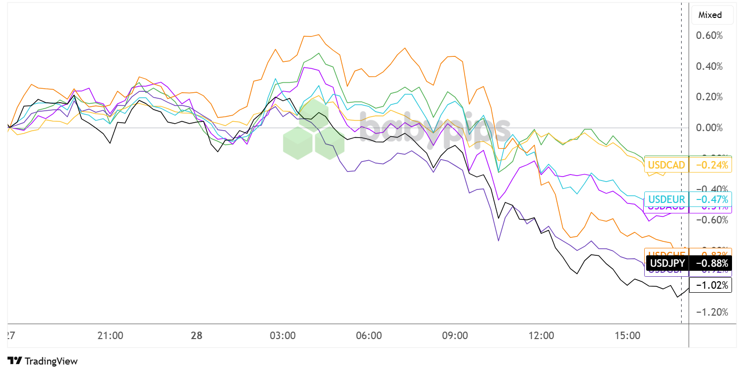 Overlay of USD vs. Major Currencies Chart by TradingView
