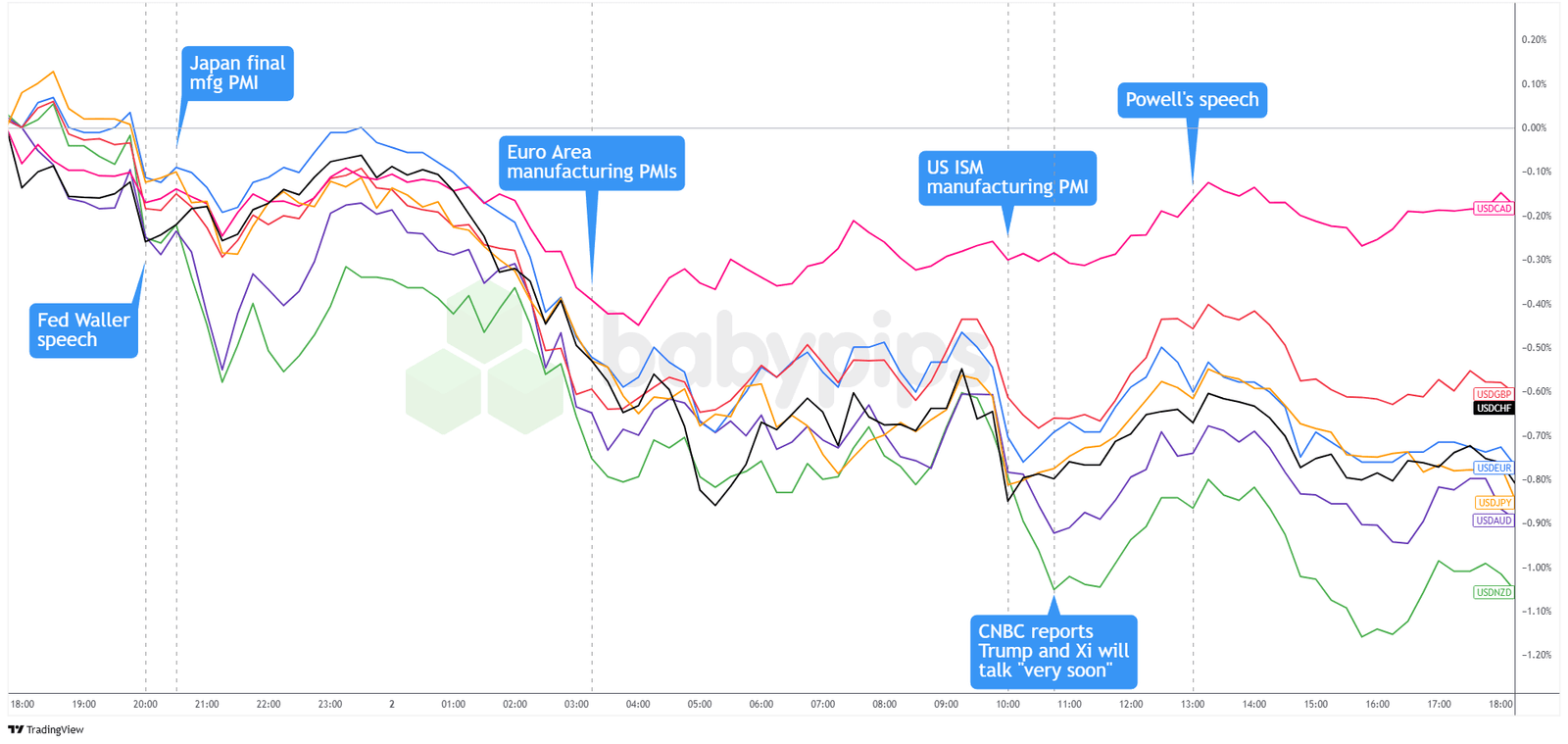 Overlay of USD vs. Major Chart by TradingView