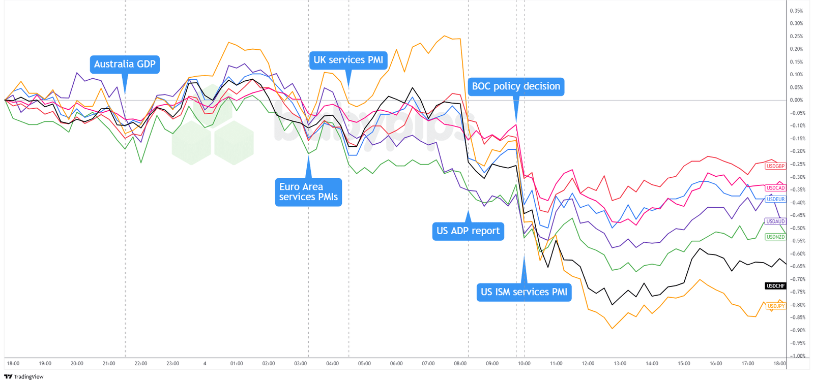 Overlay of USD vs. Majors Chart by TradingView
