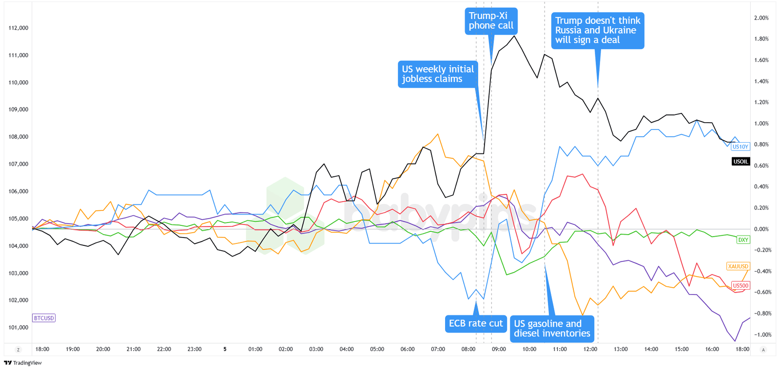 The major assets were all over the charts on Thursday. There was a sense of calm in early US trading after President Trump said he had a “very positive” 90-minute call with Chinese President Xi Jinping, sparking fresh hopes for progress on trade. Risk assets took the cue and started the session in the green.