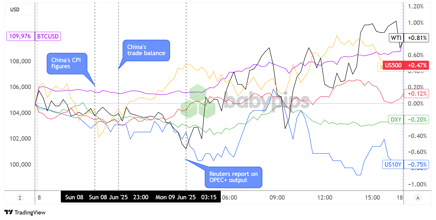 Crude oil got an additional boost from reports revealing that the OPEC+ only managed a smaller increase in output than targeted while bitcoin was able to surge back above the $110K mark.