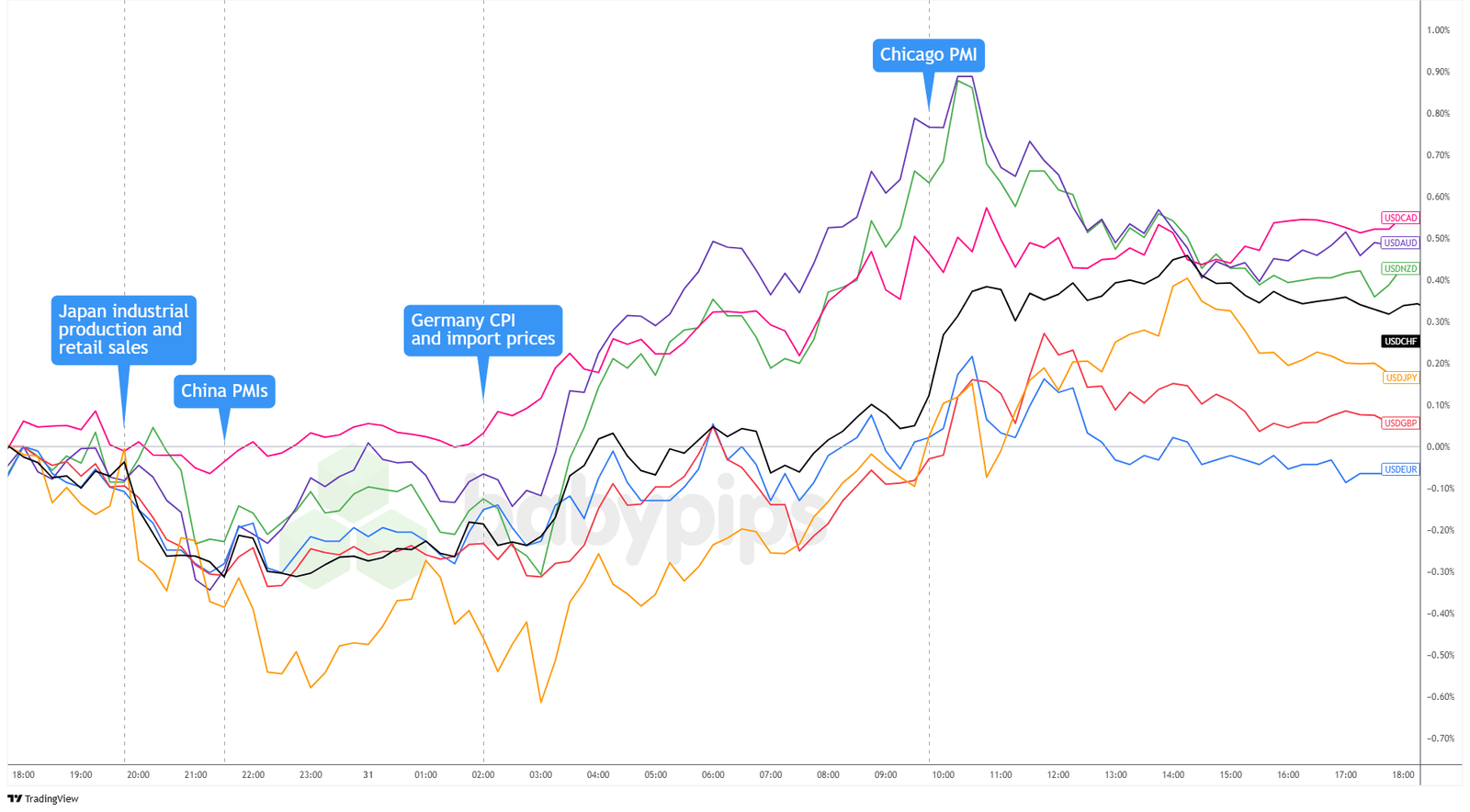 Overlay of USD vs. Major Currencies Chart by TradingView