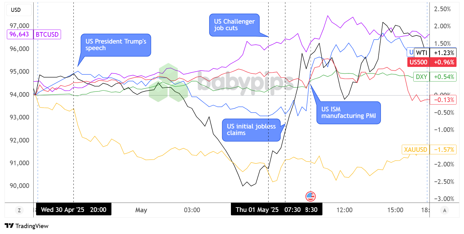 - U.S. ISM Manufacturing PMI for April 2025: 48.7 (47.2 forecast; 49.0 previous); Prices: 69.8 (70.0 forecast; 69.4 previous); Employment: 46.5 (44.1 forecast; 44.7 previous)