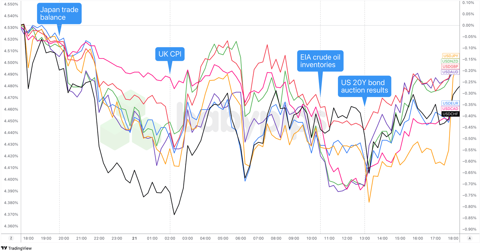Overlay of USD vs. Major Currencies Chart by TradingView