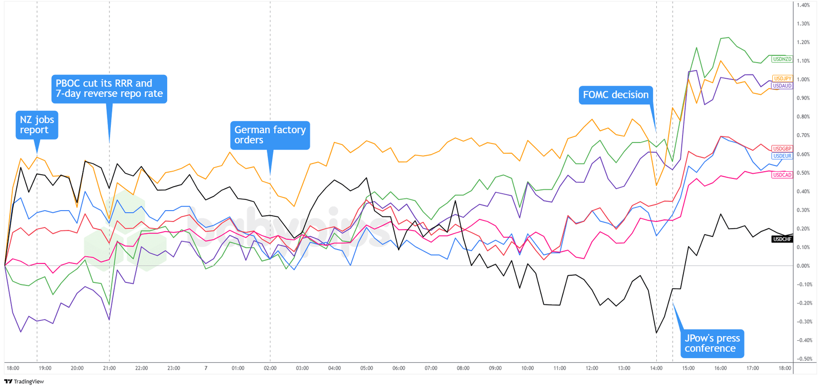 Overlay of USD vs. Major Currencies Chart by TradingView