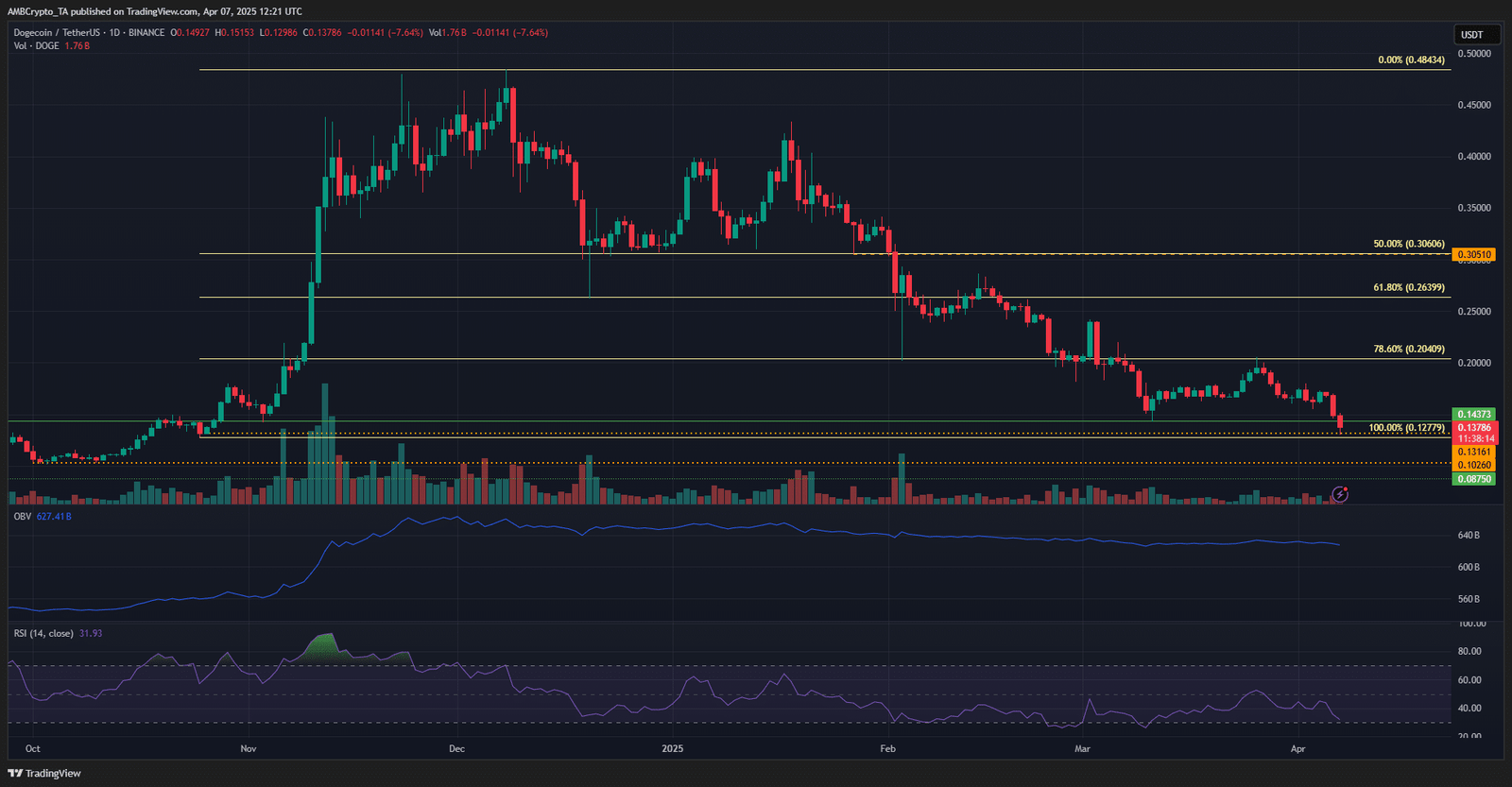 - October’s lows would be the next price targets for DOGE