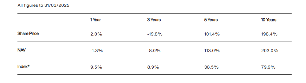 Zooming further out though, the five- and 10-year returns are more than double the index’s (up to 31 March). But a return to form is needed soon before investors start losing faith.