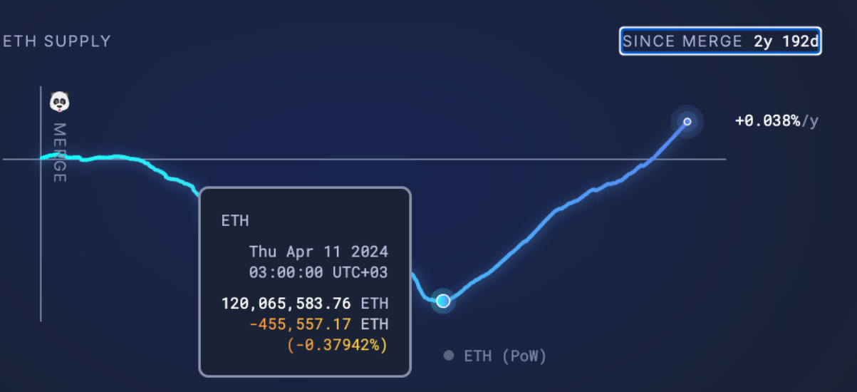 Ethereum supply reclaims pre-Merge levels. Source: Ultrasound.money