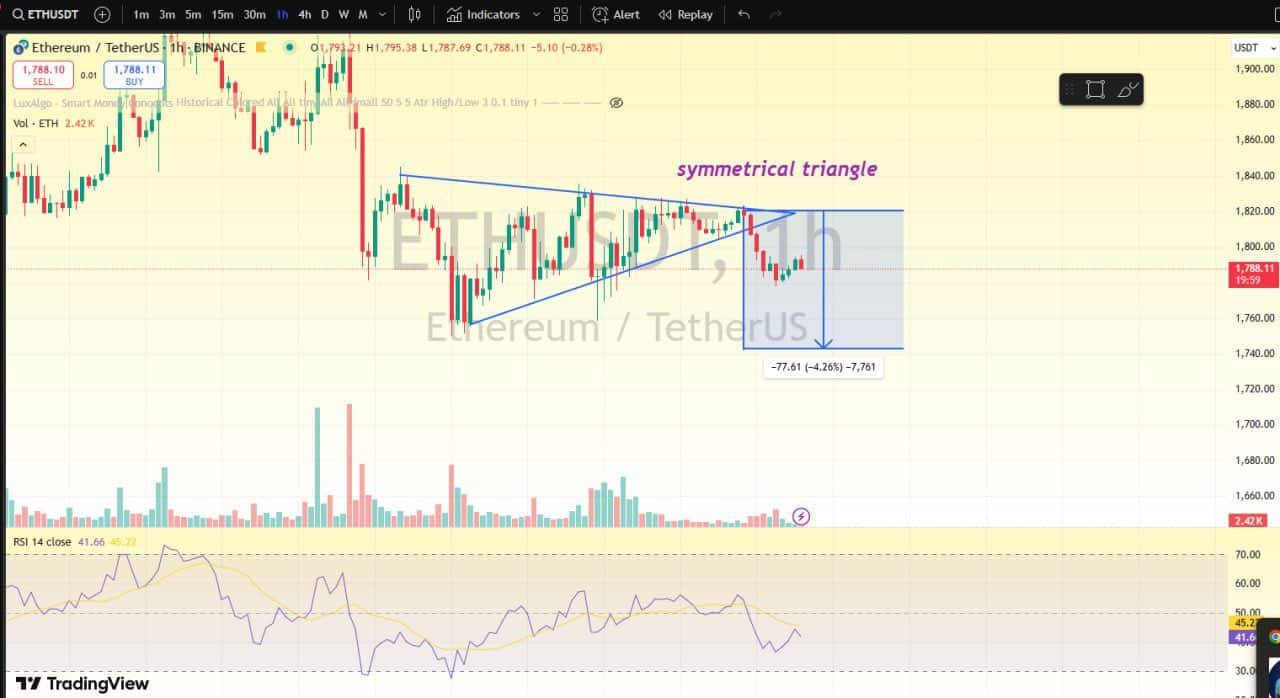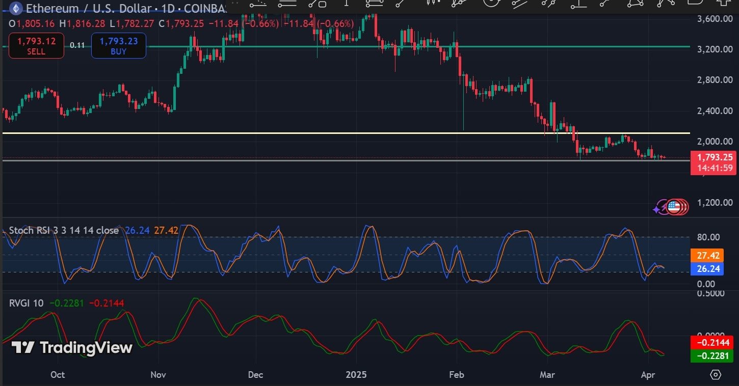 Current market conditions position Ethereum for a potential further downside. With its price dropping to $1,788, a breach of the $1,757 support level could push ETH toward October 2023 levels around $1,657.