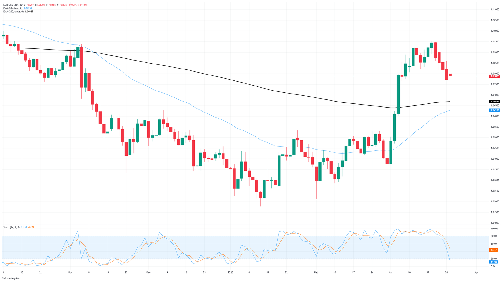 A steady five-day drop has pushed EUR/USD back below the 1.0800 handle, and the pair could be poised for a furthe backslide into the 200-day Exponential Moving Average (EMA) near 1.0675. A near-term turnaround has dragged Fiber back down after a bullish push to the 1.0950 technical level fizzled out, and EUR/USD now has a fresh technical ceiling to contend with if bidders are able to get their ship keel-side down once more.