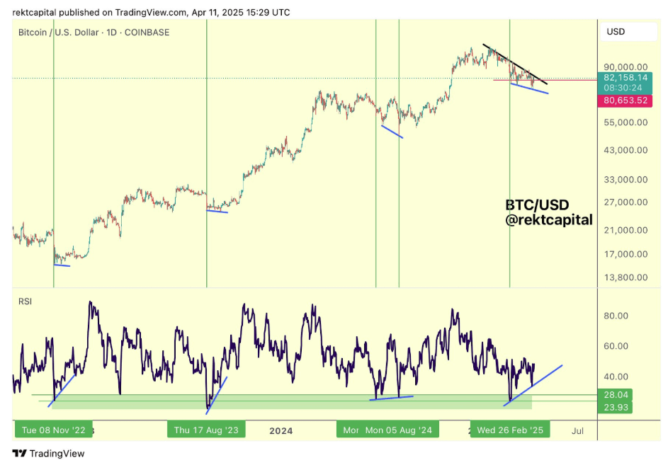 Meanwhile, crypto analyst Rekt Capital revealed that Bitcoin is developing another Higher Low on the Relative Strength Index (RSI) while forming Lower Lows on the price. He noted that throughout the cycle, BTC has formed bullish divergences like this on a few occasions. This is a positive for the flagship crypto, as each divergence has always preceded reversals to the upside, indicating that BTC could again rally to the upside soon.