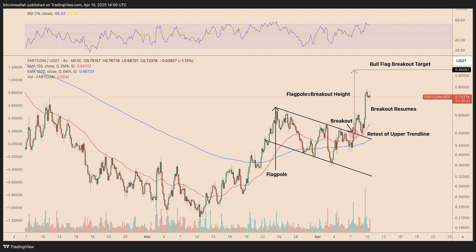 FARTCOIN’s bullish technical outlook arises from its prevailing bull flag setup.