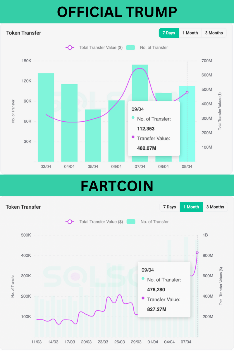 FARTCOIN vs. TRUMP daily transfer value chart. Source: SOLSCAN