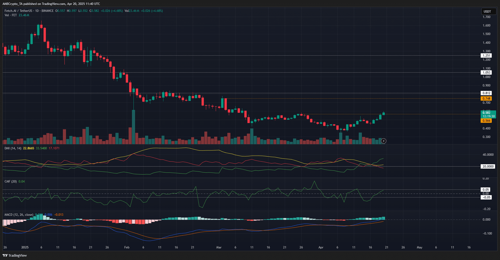The MACD was on the verge of making a bullish zero line crossover, which would be another sign of buyer dominance. Overall, it appeared likely that the Artificial Superintelligence Alliance token would climb higher.