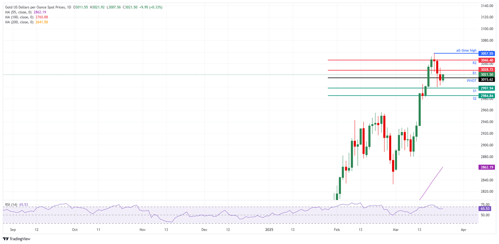 Gold’s price (XAU/USD) stabilises near $3,020 at the time of writing on Tuesday as traders assess fresh tariff headlines from United States (US) President Donald Trump. The president issued an executive order on Monday to impose “secondary tariffs” of 25% on all imports from those countries buying Oil from Venezuela, which would mean a sharp rise in levies on goods from China and India.