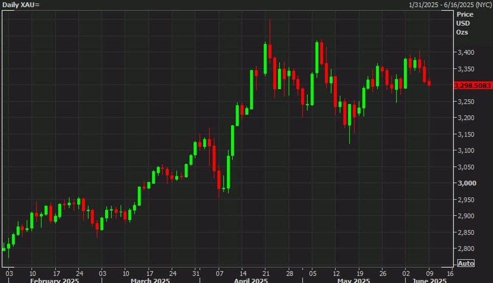 I see gold as mainly a barometer for the trade war at the moment and I think we will see some US deals in the week ahead. The G7 is coming up June 15-17 with Trump traveling to Canada and I expect he will want to make some announcements before then. China isn’t going to get done in that timeline but there could be some real progress with the teams slated to be in London all week. In addition, there are strong hints that a deal with Canada is possible this week.