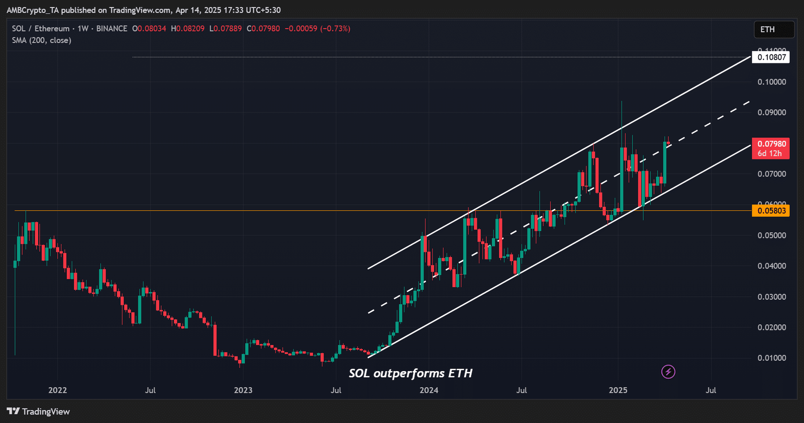 It closed at 0.08 and reclaimed the mid-range, which could push the ratio higher to the upper channel of 0.09.